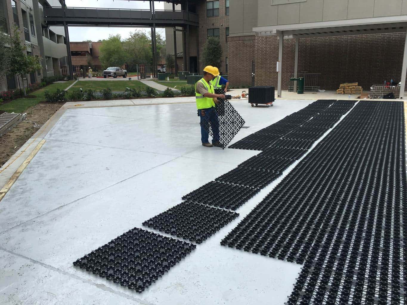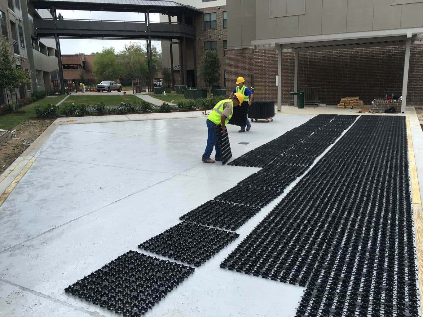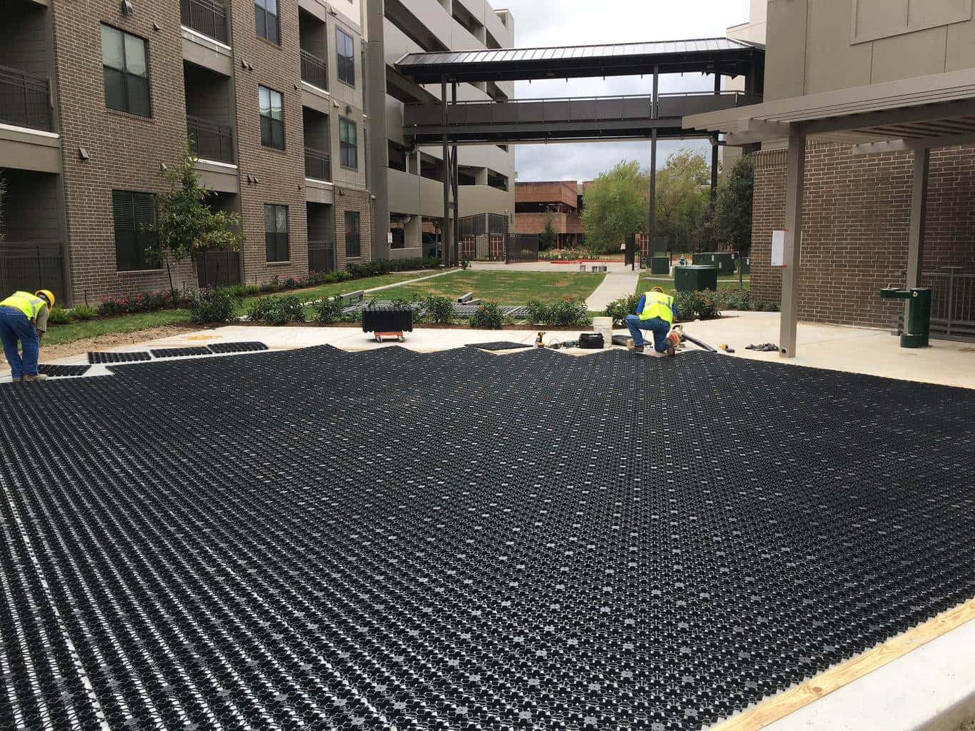 Made with 100% post industrial recycled content AirField uses the highest quality materials for their AirDrain Geocell. AirDrain is 1 inch high 92% air void space underneath your synthetic turf.
