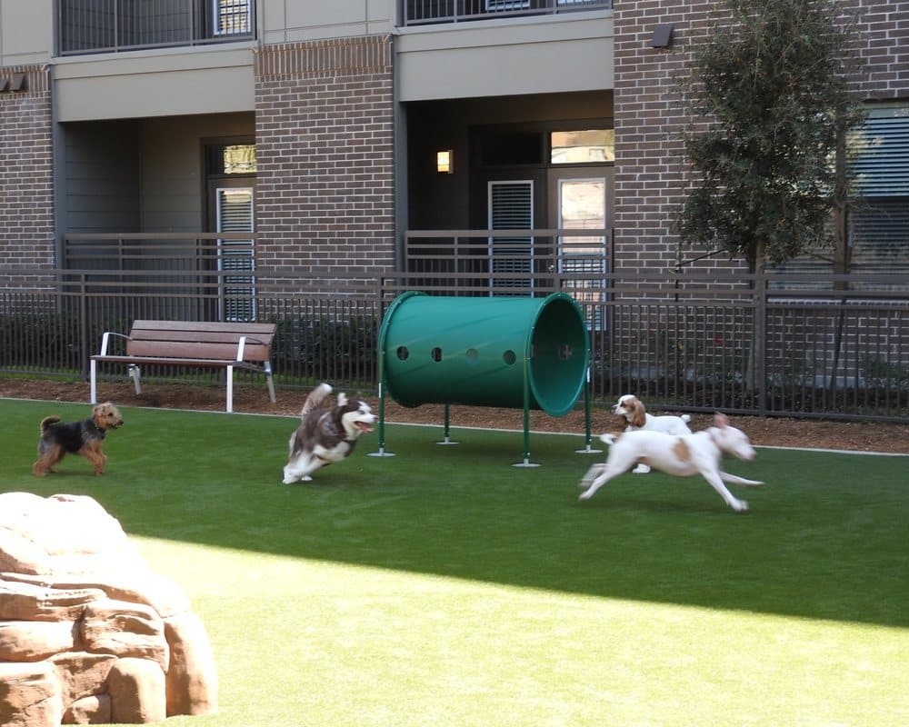 K9 Grass areas that are tried and true with over 800+ installations, AirDrain K9 Turf Drainage by AirField Systems is the ideal artificial grass synthetic drainage system used in dog day care facilities, pet playgrounds, airport dog potties and general use K9 areas for dogs all across America.